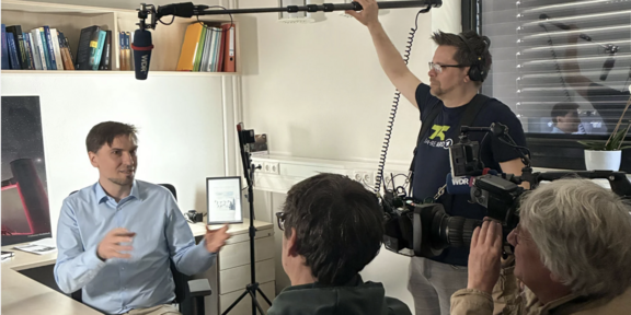 A camera team from WDR Lokalzeit recently visited the Department of Physics at TU Dortmund University to report on the upgrade of the IceCube Neutrino Observatory in the Antarctic ice. For the feature, the team accompanied our PhD student Johannes Werthebach, who spent the 2025/26 summer season at the IceCube experiment, and Prof. Christian Glaser from our research group. Our former group member Dr. Alicia Fattorini was also interviewed via video call. She is currently spending a full year at the IceCube experiment and shared insights into life on site.